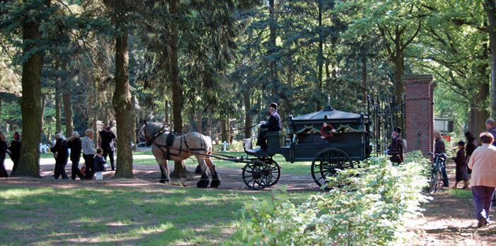 Ter gelegenheid van de erfgoeddag haalde men in Merksplas-Kolonie een oude corbillard van stal. Met een dergelijke lijkwagen werden de vagebonden of colons (door de staat opgevangen daklozen) tot in 1975 naar hun laatste rustplaats gebracht. Die is bijzonder mooi, midden in de bossen, als in een groene kathedraal.