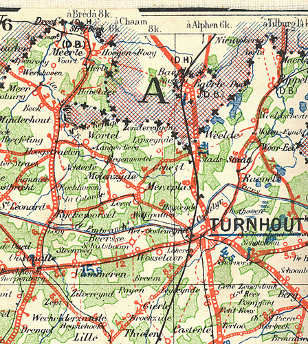 Een wandelingetje over de rommelmarkt van Wortel-Kolonie op pinkstermaandag leverde een oude landkaart op, uit het tijdperk van voor de autosnelwegen. Een fraai stuk graveerwerk uit Parijs (Cartes-Guides Campbell, Ed. Blondel La Rougery, 7 Rue St. Lazare), ooit door iemand aangekocht bij Boekhandel A. Vanhoutte, Nationalestraat 41 in Antwerpen. Toen ik de kaart openvouwde en zocht naar de plaats waar ik ze had verworven, zag ik dat zelfs de Molenzijde en La Colonie van Merksplas en het Maison de Refuge van Wortel (net onder de grens) aangeduid staan. Het ontroerde me. Lezers van Mijn België verwijs ik hier graag naar het lemma Cm².
