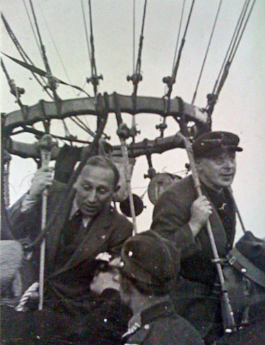 Op 6 juli 1899 werd Martial Van Schelle geboren in Merksplas, misschien in de kamer waar ik vanochtend ontwaakte. Tijdens het interbellum bouwde hij een indrukwekkende loopbaan uit als topzwemmer, maar ook als zakenman. Dit is een van mijn lievelingsfoto’s: als secondant van Philippe Quersin (zelf weer een leerling van Ernest Demuyter) nam hij deel aan de Gordon-Bennetwedstrijd voor ballonvaarders, die in september 1934 vertrok in Warschau. Quersin draagt het monocle, Van Schelle drukt de hand van iemand die geluk wenst.