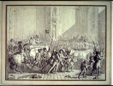 Chateaubriand beschrijft in zijn Mémoires d’outre-tombe de sfeer in Parijs, enkele dagen na de bestorming van de Bastille: “Ik stond bij de vensters van mijn kamer met mijn zusters en enkele Bretoenen; wij hoorden roepen: ‘Sluit de poorten! Sluit de poorten!’ Een groep havelozen arriveert langs een kant van de straat; in het midden van die groep rezen twee standaarden op die we niet goed konden zien. Toen ze naderden, onderscheidden wij twee verminkte hoofden, die de voorlopers van Marat elk op het uiteinde van een lans voorbijdroegen: het waren de hoofden van de heren Foulon en Berthier. Iedereen deinsde terug van de vensters; ik bleef staan. De moordenaars hielden vóór mij halt en reikten mij al zingend en springend de lansen, om de bleke beeltenissen dichter bij het mijne te brengen. Het oog van een van die hoofden, losgeraakt uit zijn kas, hing neer op het donkere gelaat van de dode; de punt van de lans stak door de geopende mond, de tanden beten in het ijzer. ‘Schurken,’ riep ik, vol van een verontwaardiging die ik niet kon inhouden, ‘is het zo dat jullie de vrijheid verstaan?’ Had ik een geweer bij me gehad, ik zou op die ellendelingen hebben geschoten als op wolven. Ze brulden en stampten met verdubbelde kracht op de koetspoort om ze in te trappen en mijn hoofd bij dat van hun slachtoffers te voegen. Mijn zusters werden onwel; de lafaards van het gebouw maakten me hevige verwijten. De slachters, die men achtervolgde, hadden niet de tijd om het huis binnen te dringen en trokken weg. Die hoofden, en andere die ik niet veel later zag, veranderden mijn politieke gezindte; ik voelde weerzin jegens deze kannibalistische festijnen en het idee om Frankrijk te verlaten voor een ver land kiemde in mijn geest.”
