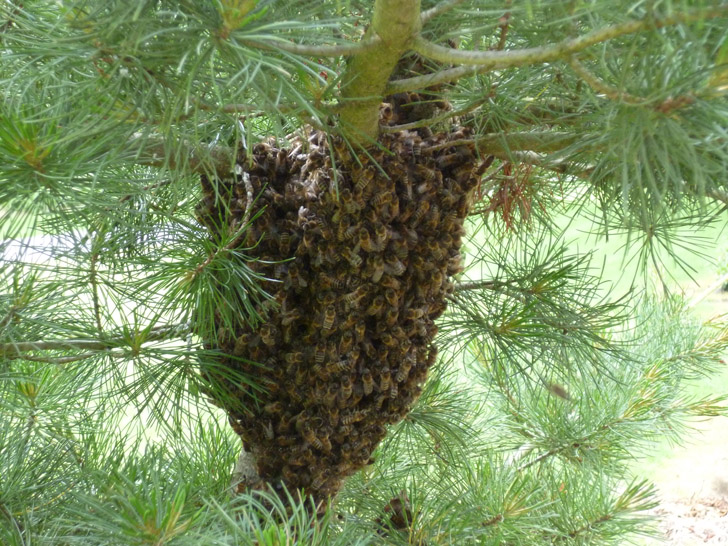 Vorige week ontdekten we een bijenzwerm in de tuin. De imker is gekomen en heeft het grootste deel van de bevolking, samen met de koningin, meegenomen; maar de achterblijvers houden goed stand.