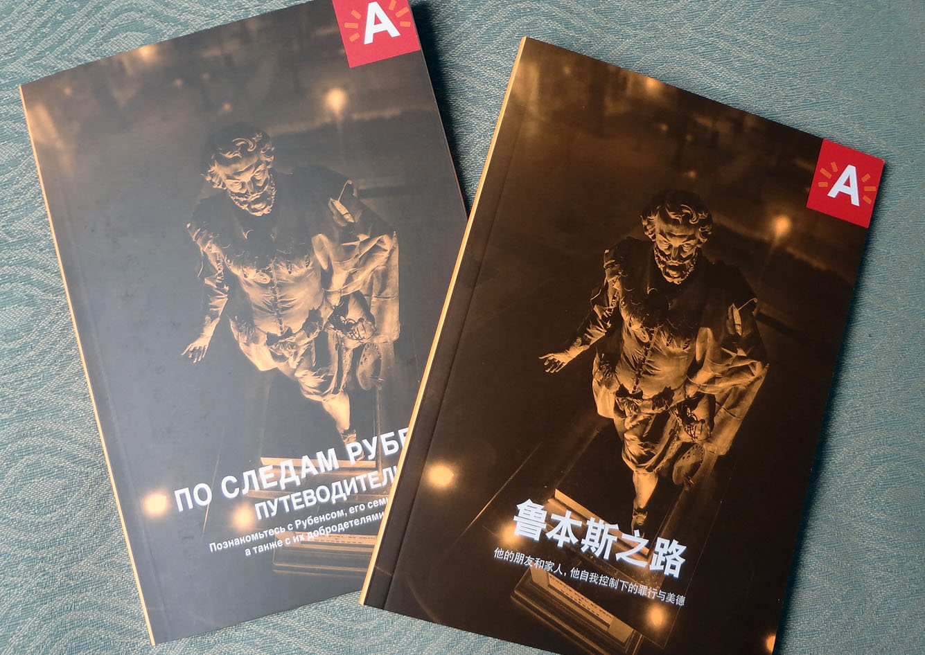 Russische en Chinese toeristen in Antwerpen kunnen nu onze woorden over Rubens lezen. En ik bestudeer het colofon om mijn naam in Chinese karakters en Cyrillisch schrift te zien. Misschien reist zo’n boekje in een koffer mee naar het verre noorden en oosten – nieuwe avonturen voor onze held!
