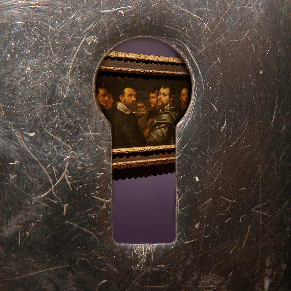 Een mooie foto uit het Rubenshuis, ter gelegenheid van Rubens Privé. De jonge Rubens met zijn broer, Justus Lipius en Italiaanse vrienden, onder wie misschien wel Galileo Galilei.
