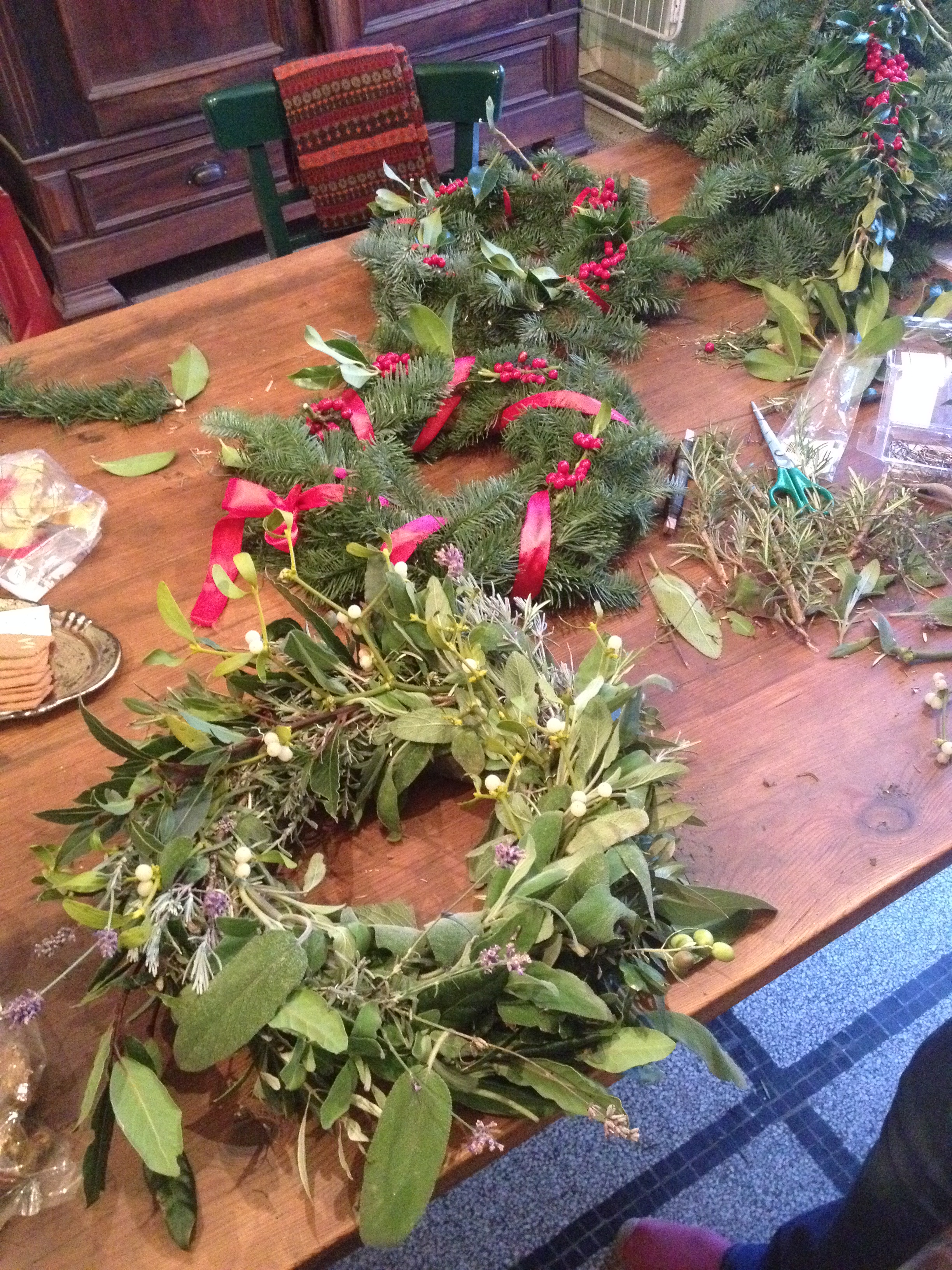 Zoals elk jaar staken we de handen uit de mouwen, snoven we de geur op van dennentakken, salie en lavendel en luisterden we naar een kerst-cd van Bob Dylan. Laeti triumphantes!