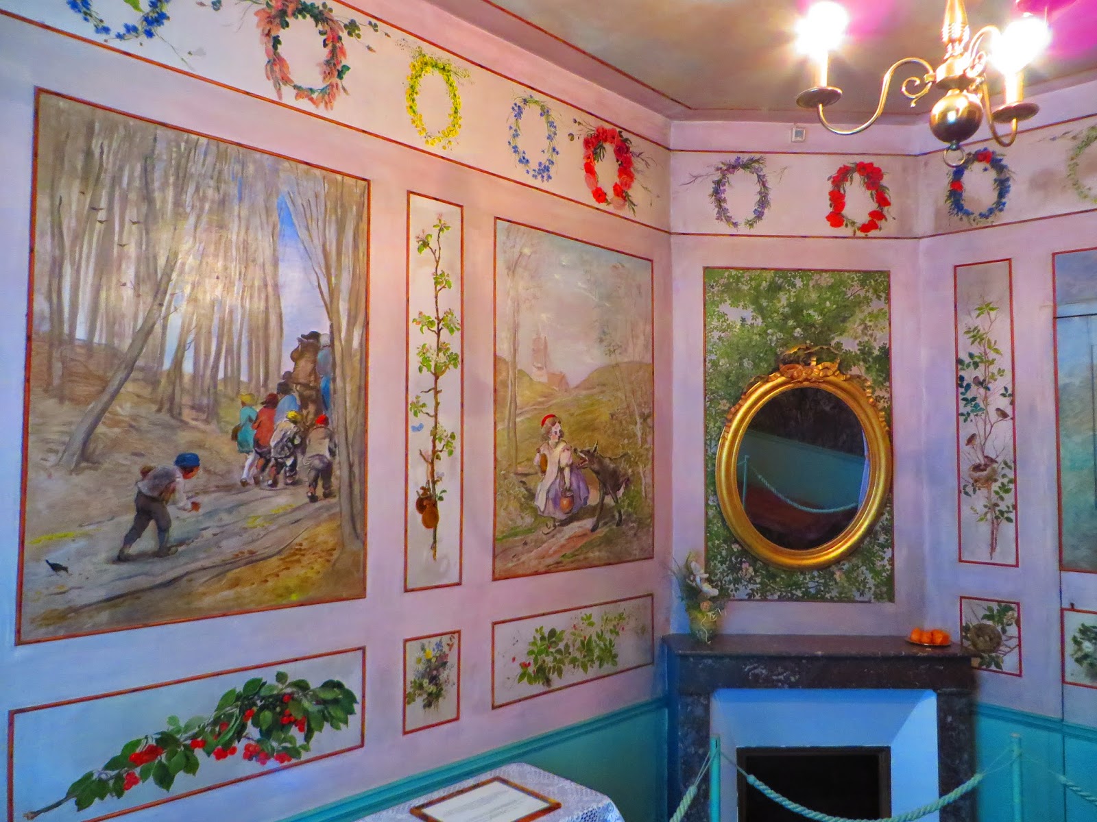 Charles-François Daubigny (1817-1878) leefde als God in Frankrijk: hij schilderde jarenlang de meest prachtige landschappen en kocht een bootje om rustig zijn geliefde rivieren te bevaren en nieuwe gezichtspunten te ontdekken. Wat wil een mens eigenlijk nog meer? De dochter van Daubigny leefde als de dochter van God in Frankrijk: haar vader beschilderde haar kamer met taferelen uit haar geliefde sprookjes en toen ze eenentwintig werd, voegde hij daar een fries met eenentwintig bloemenkransen aan toe. Ik vind het ontroerend. Lezend over de schilderschool van Barbizon kom ik overigens opnieuw Paul Huet (1803-1869) tegen, een naamgenoot die mooie Normandische landschappen vastlegde. Het zou niet slecht zijn om in zijn voetsporen te gaan zwerven. Tegelijkertijd doet al die openluchtschilderkunst de vraag rijzen: als schilders ons al zo lang attent maken op de schoonheid van het Europese landschap, waarom zijn we er dan toch zo slordig mee omgesprongen?