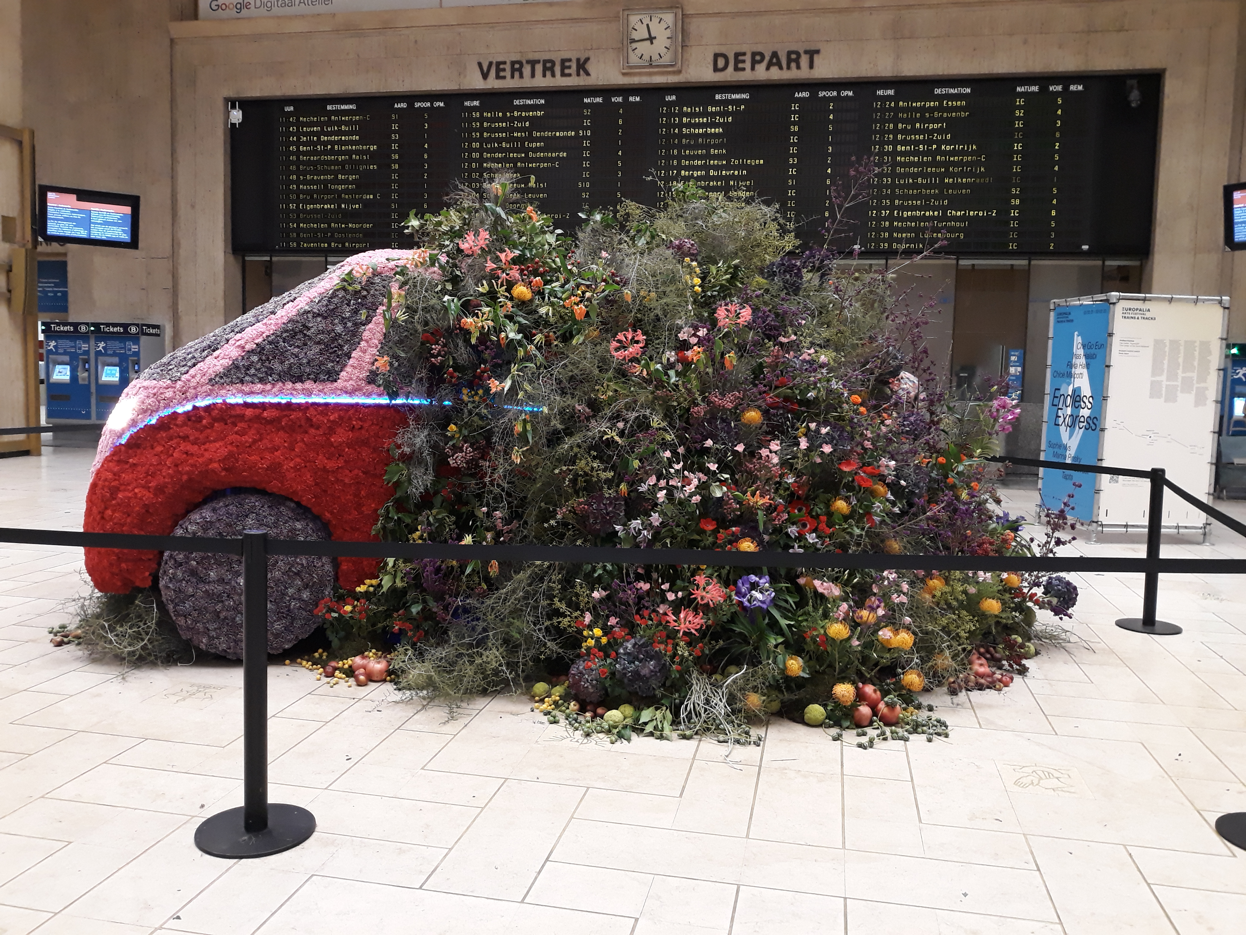 Het doet wel goed, zo’n bloemencreatie te zien. Voordat de pijnlijke armoede in Brussel zich toont, op blote voeten in november.