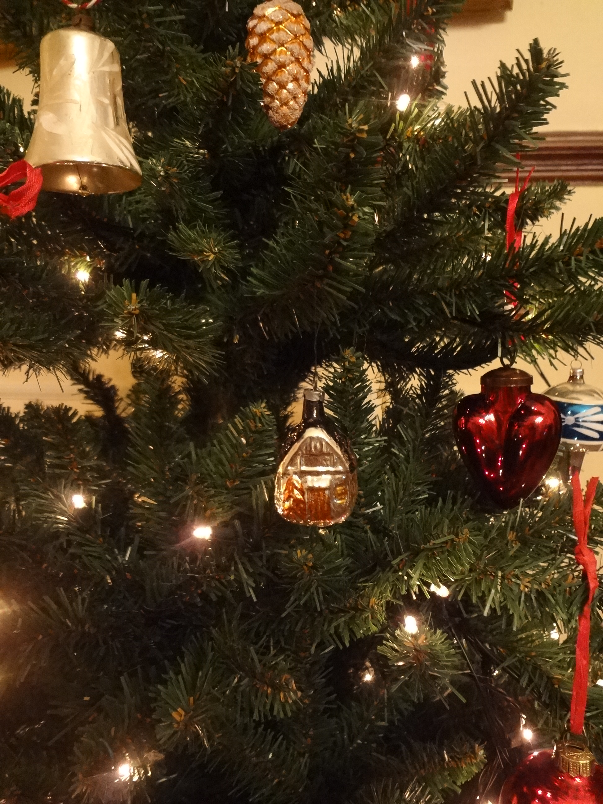 Kerstmis vieren met wat men ter plaatse vindt, voelt soms wat vreemd. Maar dat ik hier vorig jaar op haast miraculeuze wijze de kerstbal in de vorm van een huisje, afkomstig van mijn grootouders, ongeschonden op de bodem van de bergkast terugvond, dat is geluk.