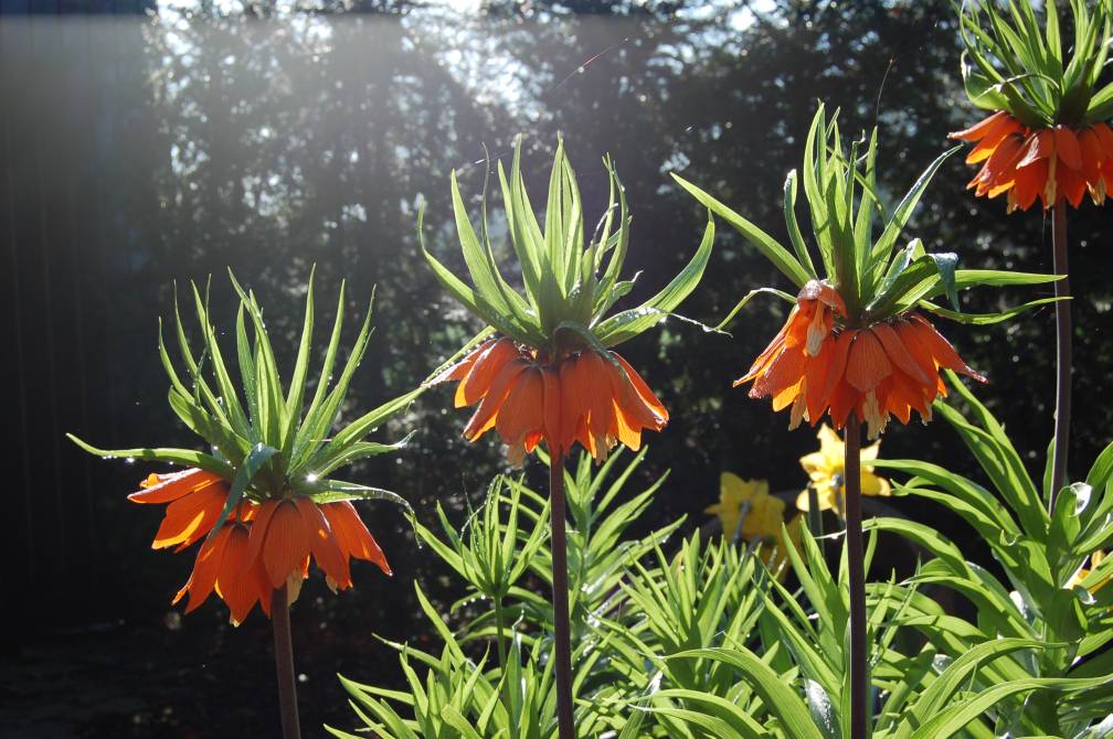 Maart probeert mijn stemmingen in te halen en slaagt er niet in. De aanblik van de keizerskronen doet me zoals elk jaar plezier – bloemen geplant door mijn ouders, bloemen die me aan de zestiende eeuw doen denken, en aan houtsneden in het kruidboek van Rembert Dodoens. Kom, zon, en laat je licht vangen door al die kelken.