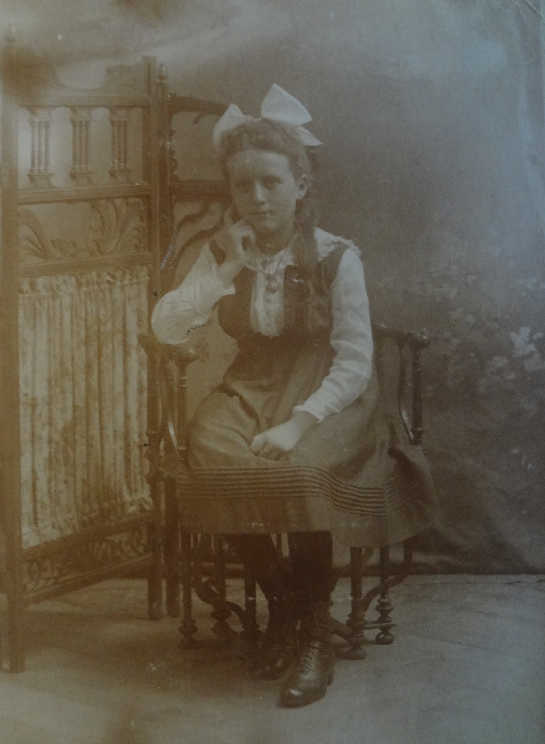 En ik blader in een fotoalbum terug naar de foto van de oudtante als jong meisje, foto die me als kind al aansprak.