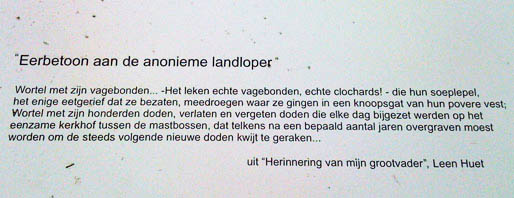 “We hebben Wortel gekend met zijn overgrote bevolking die op een bepaald moment ver de duizend overtrof; Wortel met zijn Franse vluchtelingen tijdens de Eerste Wereldoorlog; Wortel met zijn duizend Russische krijgsgevangen in 1919 en van wien we als bengels Russisch leerden spreken en het beter kenden dan onze catechismus; Wortel met zijn grote opstand die gewapenderhand moest bedwongen worden; Wortel met zijn overbevolkte zalen en waar ’s winters de kolonisten in hun klomp pisten om hun plaats bij de kachel niet te verliezen; Wortel met zijn vieze spuwbakjes; Wortel met zijn erwtensoep, 365 dagen per jaar en waarvan de geur tot in de bladen van uw kerkboek stak; Wortel met zijn sjofel geklede mannen, op hun blokken, met hun stinkende besace waarin ze al wat ze bezaten de ganse dag meesleurden; Wortel met zijn vagebonden…. -Het leken echte vagebonden, echte clochards! – die hun soeplepel, het enige eetgerief dat ze bezaten, meedroegen waar ze gingen in een knoopsgat van hun povere vest; Wortel met zijn bronzen munt, een ideaal middel om te sjacheren; Wortel met zijn honderden doden, verlaten en vergeten doden die elke dag bijgezet werden op het eenzame kerkhof tussen de mastbossen, dat telkens na een bepaald aantal jaren overgraven moest worden om de steeds volgende nieuwe doden kwijt te geraken. En dan kregen we de doden van Hoogstraten er nog bij te begraven; het was de tijd dat we, als misdienaars, bijna elke dag te laat in de school konden komen omdat we de heer aalmoezenier moesten vergezellen naar het kerkhof met kwispel en wierook… Onvoldoende kleren, te weinig voedsel, ontoereikende geneesmiddelen; vooral de Spaanse griep in 1917 heeft onvoorstelbare ravages gehouden onder die ondervoede mannen.”