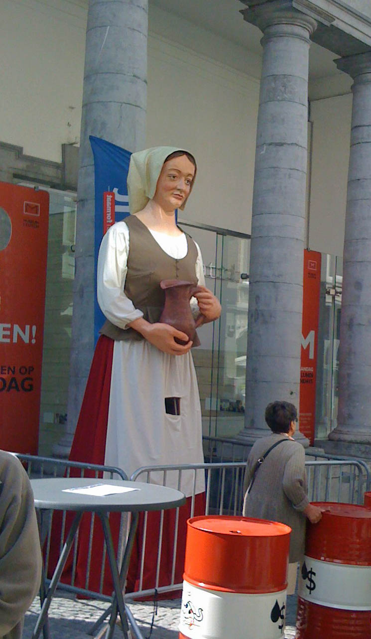 Slenterend over de jaarmarkt werd ik gecharmeerd door een beroemde stadsgenote: Fiere Margriet heeft een lief gezicht en een mooie rode rok, en ze stond daar zo aardig, bij het museum. Bovendien, een meisje dat al eeuwen bekend is om haar verzet tegen verkrachting durf ik gerust een feministe te noemen.