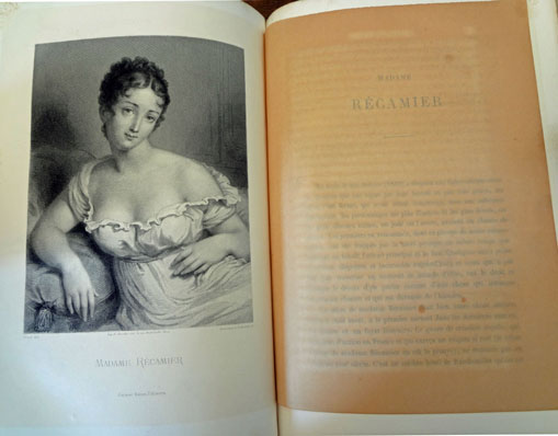 Rommelend in mijn kleerkast ontdek ik een oud geïllustreerd boek. Galerie des femmes célèbres. Een bloemlezing uit de Causeries du Lundi van criticus Sainte-Beuve. Kleine uiteenzettingen over beroemde Franse vrouwen. Van Marguerite de Navarre (schrijfster) tot Madame Récamier, ster van een literair salon dat in 1849 zijn deuren sloot. Als ik het helemaal lees, zal ik Franser zijn dan menige française, veronderstel ik, op ontspannen provinciale wijze. De vertelling over Juliette Récamier leert me alvast hoe literaire salons in de negentiende eeuw werkten, voor vrouwen. Wees een beroemde schoonheid. Sla een schrijver aan de haak, platonisch of niet. In het geval van Juliette Récamier was dat de grote, moeilijke Chateaubriand. Nodig op een vaste avond in de week mensen uit voor sprankelende conversatie met culturele sterren. Ja, men moest kunnen vertellen en entertainen in gezelschap, vroeger, niet zozeer bij een scherm op een klavier zitten tikken.