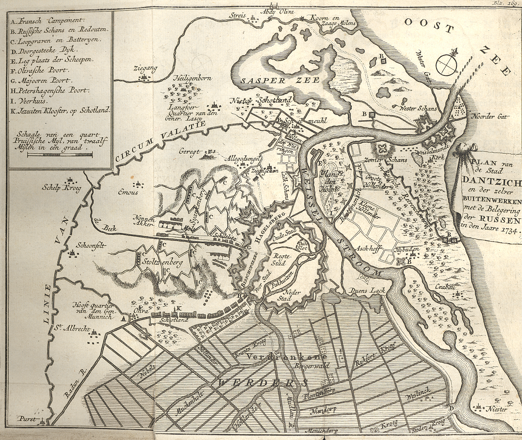 Bellone in Europa: vervattende een zaakelyke beschryvinge van den tegenwoordige oorlog. Met aanwyzinge der Vorsten, Volken, Landen en Steden; verçiert met Poëtische denkbeelden in Vaerzen en Prentverbeeldingen, te Amsterdam, By Reinier en Josua Ottens, in de Wereld-kaart, 1734. (Klik op de afbeelding voor een groter formaat.)
